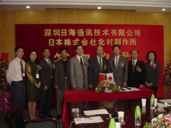 2004年4月13日,公司与日本株式会社北村制作所就户外一体化机房的设计、生产、销售和服务在350vip8888新葡的京公司智能签订了合作协议,共同合资组建深圳北村350vip8888新葡的京公司机房技术有限公司,并举行了隆重的签字仪式。公司周展宏董事长、王文生总裁、杨飞董事、机房事业部负责人孟庆光和日本北村制作所北村泰作董事长、永井正幸常务董事等出席了签字仪式。