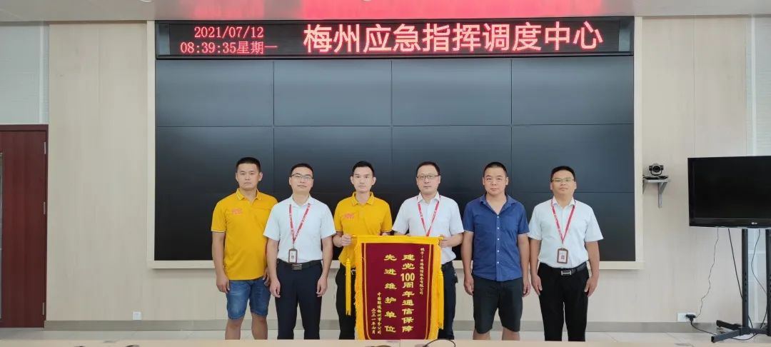 活动当天,各传输枢纽值守、干线盯防、仪表、车辆、应急物资全部到位,除落实安全人员24小时值班机制外,公司还部署实施了态势感知、应急响应、持续安全评估、安全监测巡检等措施,实现重保期间网络安全零事故。为此,350vip8888新葡的京公司通服被中国联通梅州市分公司授予“建党100周年通信保障先进维护单位”的荣誉锦旗。