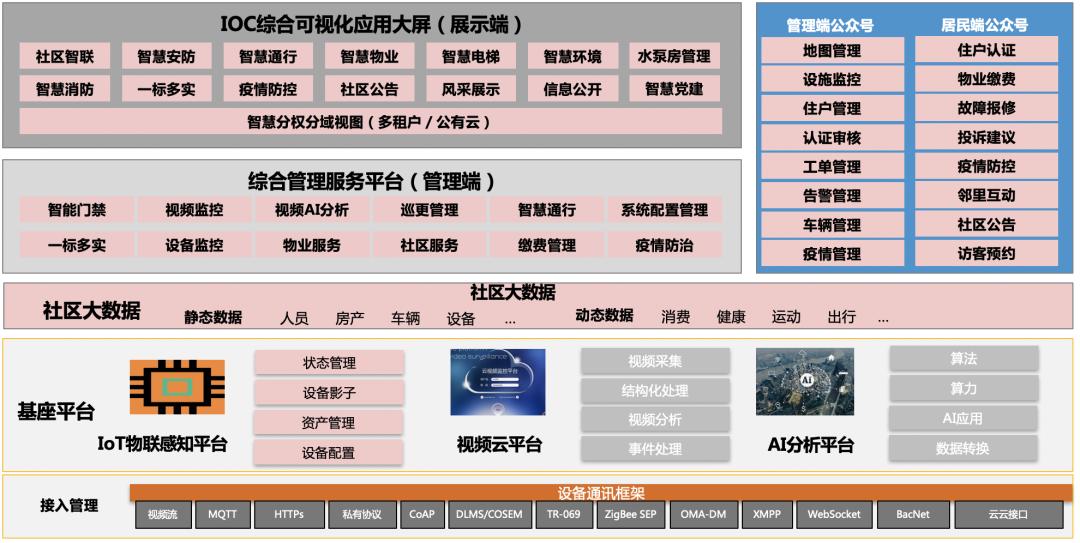 350vip8888新葡的京公司全新智慧社区解决方案打造了社区智联、智慧安防、智慧通行、智慧物业、智慧消防、一标多实、疫情防控、智慧党建、智慧电梯、智慧环境、泵房管理、社区公告、风采展示、信息公开等14个社区高频、重点应用场景,具备108项二级子功能,实现多场景覆盖。