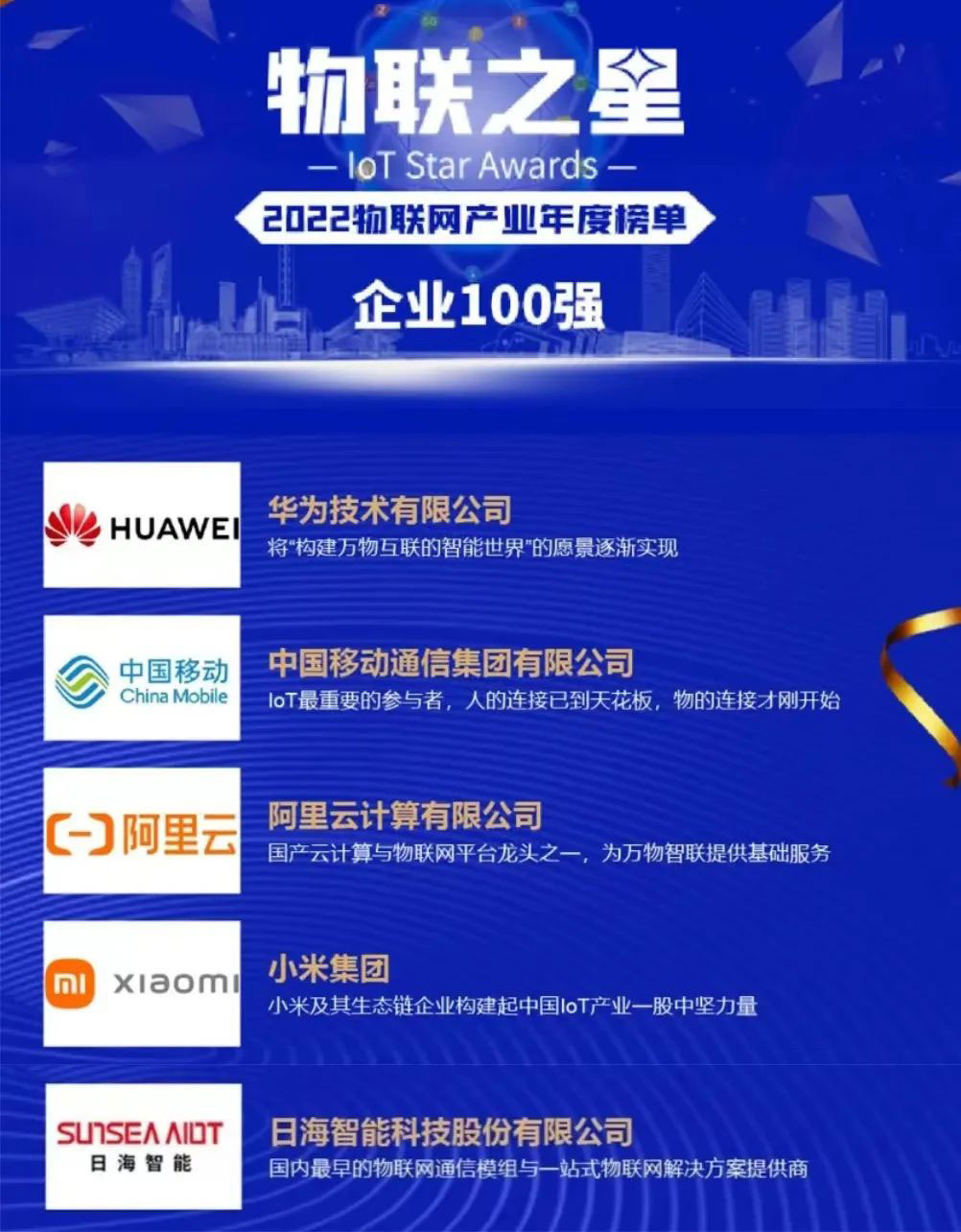 该年度榜单以公司业绩规模与人员规模较大且稳定、近三年业绩规模与净增长率表现良好、研发投入金额与占比较大并有行业影响力的新品发布、同时在物联网领域行业地位突出为四个评选标准进行严格、客观评选。飞速发展的物联网行业群雄并起,优秀企业不断涌现,350vip8888新葡的京公司智能脱颖而出,与华为、中国移动、阿里云计算等知名企业齐头并进、共同成为中国物联网企业百强,背后是近三十年的实力积淀。